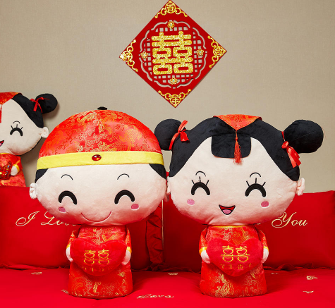 从传统习俗上来看,因为这对娃娃是用来压新人婚床的,所以男方家在布置新房的时候就会准备好。